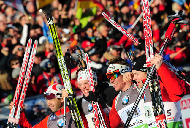 Близится к концу чемпионат мира по биатлону 2012 года, проходящий в немецком Рупольдинге. 9 марта здесь прошла мужская эстафета мужская эстафета 4x7,5 километров, которую выиграла команда Норвегии, не знавшая поражений в этой дисциплине на чемпионатах мира с 2009 года. Скандинавы очень неудачно начали гонку, но усилиями Оле Хегле Свендсена опередили на последнем огневом рубеже сборную Франции, а "бронза" досталась хозяевам чемпионата - немцам.