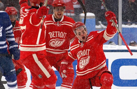 "Кленовые листья Торонто" были разгромлены в Детройте "Красными крыльями" со счетом 4:0. Хет-трик у "Ред Уингз" сделал 28-летний американец Джастин Абделькадер (на фото справа), еще одну шайбу в ворота Джонатана Бернье отправил 19-летний Дилан Ларкин.