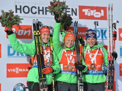 Хильдебранд, преодолевшая 7,5 километров дистанции без промаха за 20 минут 4,1 секунды, получала золотую медаль в окружении своих соотечественниц - Марен Хаммершмидт и Мириам Гёсснер, отставших, соответственно, на 15 и 21 секунду. Таким образом, в гонке преследования, которая пройдёт в субботу, 12 декабря, главными фаворитками являются именно немки.