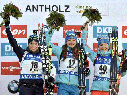 Ольга Подчуфарова: Я очень-очень счастлива. Это мой второй подиум в карьере. Моя соседка по комнате Екатерина Юрлова тоже на подиуме. Мы очень счастливы, это большой день для нашей команды. Условия в Антерсельве похожи на те, что у нас в России. Морозная, жесткая трасса.