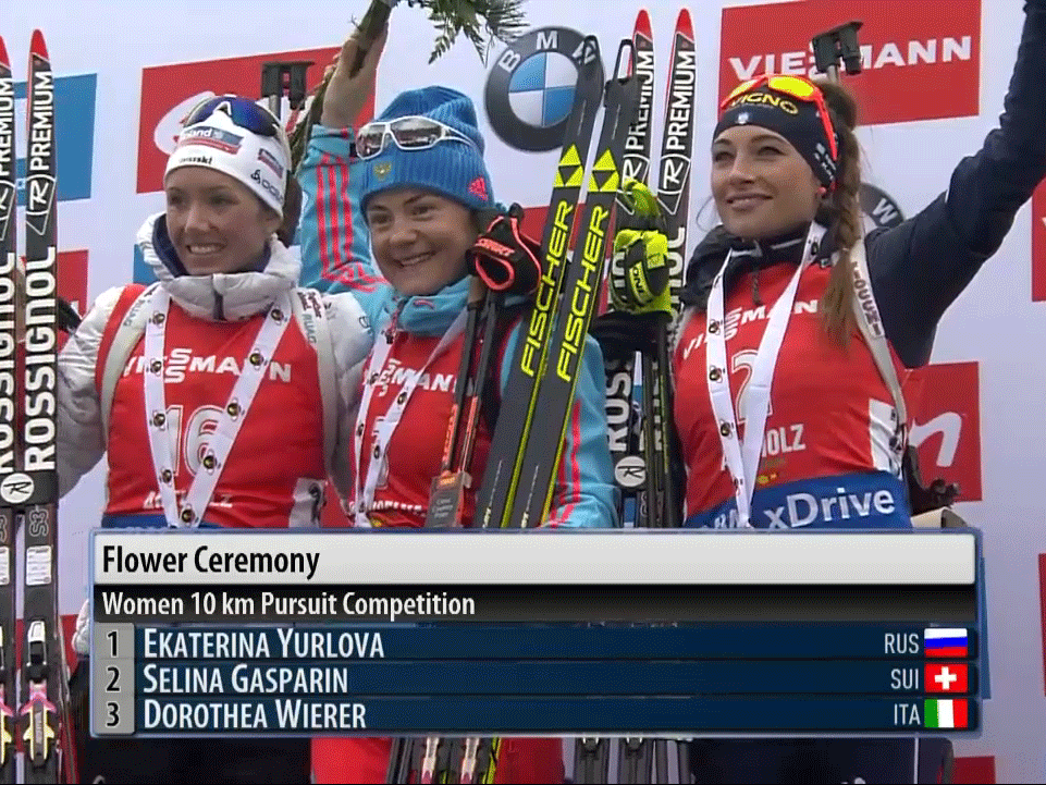 В субботу, 23 января, в итальянской Антерсельве прошла женская гонка преследованяи шестого этапа Кубка мира сезона 2015/16 годов. Победу в ней одержала россиянка Екатерина Юрлова, которая ушла со старта третьей и преодолела дистанцию в 10 километров за 30 минут 7,3 секунды. Второе место досталось Селине Гаспарин из Швейцарии, поднявшейся с 16 стартовой позиции, а третьей финишировала итальянка Доротея Вирер.