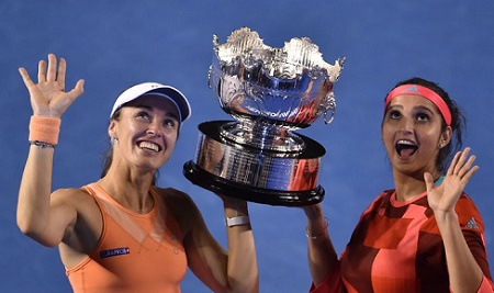 Швейцарско-индийский дуэт Мартина Хингис и Саня Мирза (на фото) стали победителями парного турнира Australian Open.