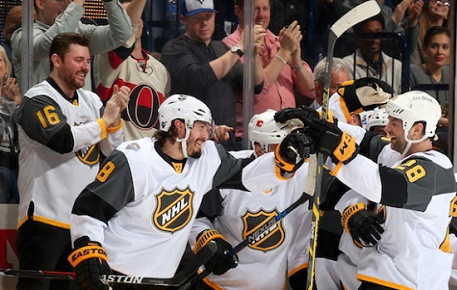 Победителем Матча всех звезд НХЛ, проходившего в 2016 году в непривычном формате, стала команда Тихоокеанского дивизиона (на фото), обыгравшая в финале сборную Атлантического дивизиона с невероятным для таких встреч счетом - 1:0. Единственную шайбу забросил Кори Перри на 14-й минуте.