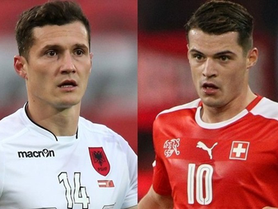 Сборная Албании до этого матча шесть раз встречалась со швейцарцами в официальных встречах и ни разу не смогла добиться победы - пять раз проиграв и один раз сыграв вничью. Особую интригу поединку придавало то, что в составе швейцарской сборной выступают сразу шесть этнических албанцев, а встреча родных братьев, игравших за разные команды стала первой в истории чемпионатов Европы. Таулант Джака вышел на поле в составе Албании, а Гранит Джака – за Швейцарию (оба - на фото).