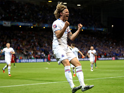 На перерыв португальская сборная ушла улыбаясь и ведя в счёте, но начало второй половины матча всерьёз испортило её игрокам настроение. На 50-й минуте редкая точная передача в линии атаки Исландии в исполнении Гудмундссона нашла в штрафной площади португальцев Биркира Бьярнасона, который свой шанс не упустил и послал мяч за спину вратарю соперника Руи Патрисиу.