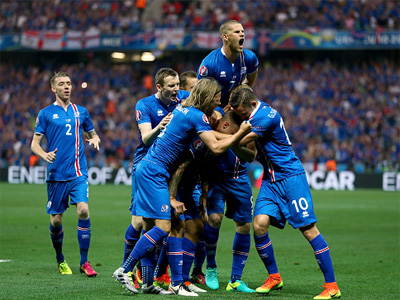 Англичане с первых минут матча с командой Исландии попытались серией атак задавить своих соперников, которые впервые в истории страны не только приняли участие в финальной стадии первенства Европы, но и пробились в плей-офф. На третьей минуте встречи голкипер сборной Исландии сфолил в своей штрафной площади на Стерлинге, словенский голкипер Дамир Скомина назначил 11-метровый удар, а ветеран английской команды Уэйн Руни точно пробив с точки открыл счёт. Однако, как показало дальнейшее развитие событий на поле, сборная страны льдов и гейзеров даже не собиралась сдаваться. Уже через две с половиной минуты Рагнар Сигурдссон, завершив ударом головой начатую со вброса мяча из аута комбинацию, восстановил равновесие в счёте, а на 18-й минуте Кольбейн Сигторссон ударом с линии штрафной после довольно длительной комбинации своих партнёров забил победный для сборной Исландии гол. Англичане по ходу всего матча значительно больше владели мячом, но преодолеть насыщенную оборону соперника больше не смогли. Поединок так и закончился победой со счётом 2:1 сборной Исландии, игра которой стала самой главной сенсацией на Евро-2016.