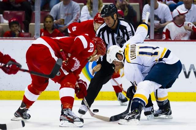 Первым клубом, который завершил борьбу за Кубок Стэнли 2012 года стал "Детройт Ред Уингз" - один из самых титулованных в истории НХЛ клубов, одиннадцать раз становившийся обладателем Кубка Стэнли, четыре из которых пришлись на последние 15 лет. Могильщиком "красных крыльев" выступил "Нэшвилл Предаторз", который был основан только четырнадцать лет назад и чьим лучшим результатом в плей-офф Кубка Стэнли является выход во второй раунд в сезоне 2010/2011. Победа над "Детройтом" позволила повторить этот результат.