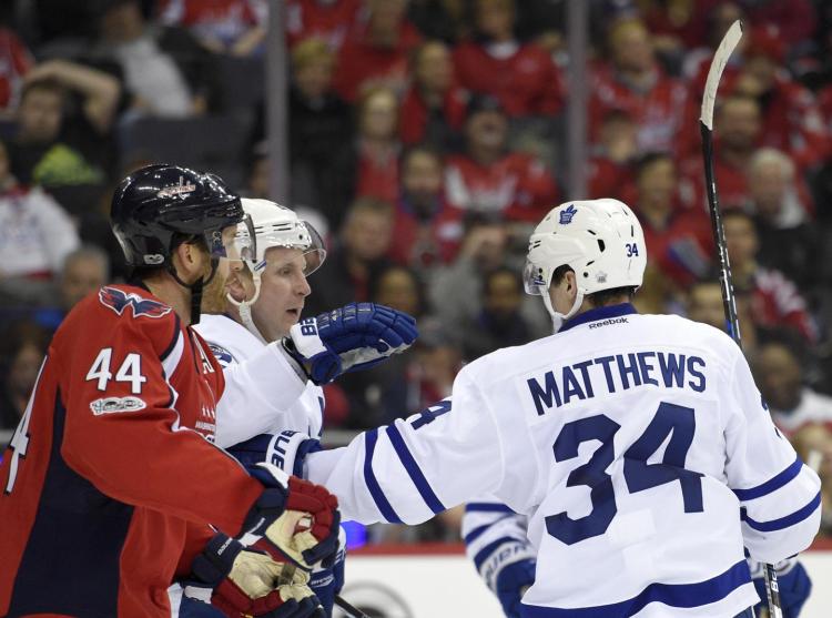 "Кленовые листья", которые и в Вашингтоне, не стеснялись в зоне "Кэпиталз", устроили штурм ворот Брэйдена Холтби, к 40-й минуте вернув на табло ничейный результат - 3:3. Сначала с передачи нарвитянина Лео Комарова (на фото в центре) отличился Назим Кадри, а затем после паса Мэттьюса цель поразил Уиллиам Нюландер. Стоит отметить, что уроженец Эстонии Комаров набрал первое очко в Кубках Стэнли. Овертайм продлился всего 97 секунд - Тайлер Бозак четко замкнул передачу Кадри, реализовав удаление Ларса Эллера - 4:3. "Кленовые листья" сумели превзойти "Столичных" и в силовой борьбе - в ней особенно хороши были Назим Кадри, Зак Химан и Лео Комаров. "Торонто" повел в серии 2:1. Четвертый матч серии также пройдет на льду "Мейпл Лифз".