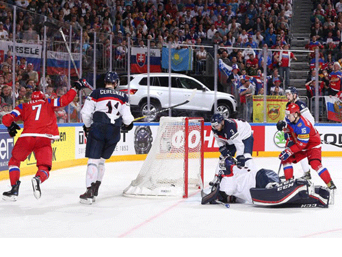 Затем также в Германии сборная России не оставила никаких шансов команде Словакии. Уже на 2-й минуте Евгений Дадонов с передачи Никиты Гусева открыл счёт в матче. Вторым ассистентом выступил Вадим Шипачёв. На 14-й минуте та же тройка и в той же последовательности удвоила преимущество сборной России, а на последней минуте первого периода Андрей Миронов довёл счёт до крупного. Во второй двадцатиминутке в воротах сборной Словакии побывали две шайбы - отличились Никита Кучеров и Иван Телегин, а третьей двадцатиминутке защитник Владислав Гавриков поставил победную точку. Победив словаков со счётом 6:0, россияне с 14 очками возглавили турнирную таблицу.