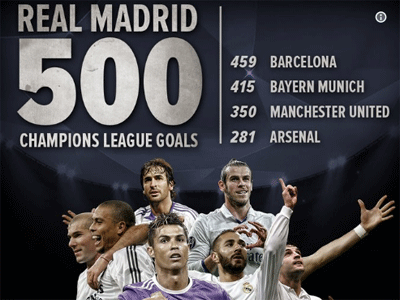 Именно мадридский «Реал» является также самой результативной командой Лиги чемпионов. К нынешнему финалу команда подошла с 499 забитыми мячами, таким образом, автором юбилейного 500-го гола стал Криштиану Роналду, а всего в активе испанского клуба теперь 503 взятия ворот соперников по Лиге Чемпионов. Португальский форвард чемпионов Испании также стал первым футболистом, забивавшим в главном еврокубке не меньше 10 мячей в шести сезонах подряд, более того - ни один другой игрок не делал этого больше двух сезонов кряду. Кроме того Роналду пока единственный футболист забивавший в трёх финалах Лиги Чемпионов подряд.