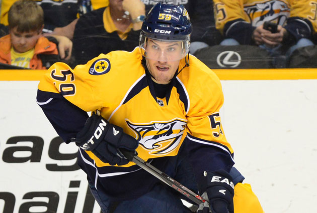 "Хищники" могли еще в первом периоде, как минимум, сравнять счет, но гостей дважды спас Мэтт Мюррей. Перелом в поединке произошел во второй двадцатиминутке, когда в ворота Мюррея влетело три безответных шайбы - сначала отличился швейцарец Роман Йоси (на фото), затем точно выстрелил новичок "Предаторз" Фредерик Годро, а за 23 секунды до перерыва ворота своей бывшей команды поразил Джеймс Нил. Швейцарец Йоси принял участие во всех трех голевых атаках, набрав 3 (1+2) балла.