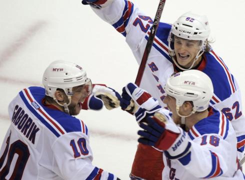 Третий матч серии между "Вашингтон Кэпиталз" и "Нью-Йорк Рейнджерс" закончился за полночь. Так как основное время победителя не выявило, то пришлось назначать дополнительное. Но ни первый овертайм, ни второй ситуацию не изменили. Только в третьем овертайме гостям из Нью-Йорка удалось забросить шайбу, которая стала победной. Шла уже 115-я минута встречи, а автором победного гола стал "рейнджер" Мариан Габорик (на фото).