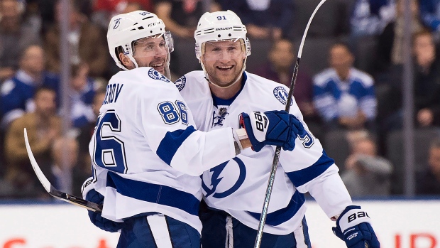 Впервые с 2001-го года два одноклубника набрали очки за результативность во всех 9 стартовых матчах чемпионата. 16 лет назад это удалось хоккеистам "Сент-Луис Блюз" Дагу Уэйту и Паволу Демитре, а на старте нынешнего первенства бесперебойно пополняют очковый багаж форварды "Молний Тампа-Бэй" Стивен Стэмкос (на фото справа) и Никита Кучеров (на фото слева). Во встрече с "Пингвинами Питтсбурга" капитан "Лайтнинг" повторил личный рекорд, набрав 4 (1+3) балла, а Кучеров забросил две шайбы и отдал одну результативную передачу. "Пингвины" были уничтожены "Молниями" со счетом 7:1 (голы: Никита Кучеров (дважды), Стивен Стэмкос, Янни Гурде, Брейден Пойнт, Антон Стральман, Михаил Сергачев (все - "Лайтнинг"), Джейк Гюнтцель ("Питтсбург"), а "Тампа-Бэй" повторили клубный рекорд, выиграв семь из девяти матчей.