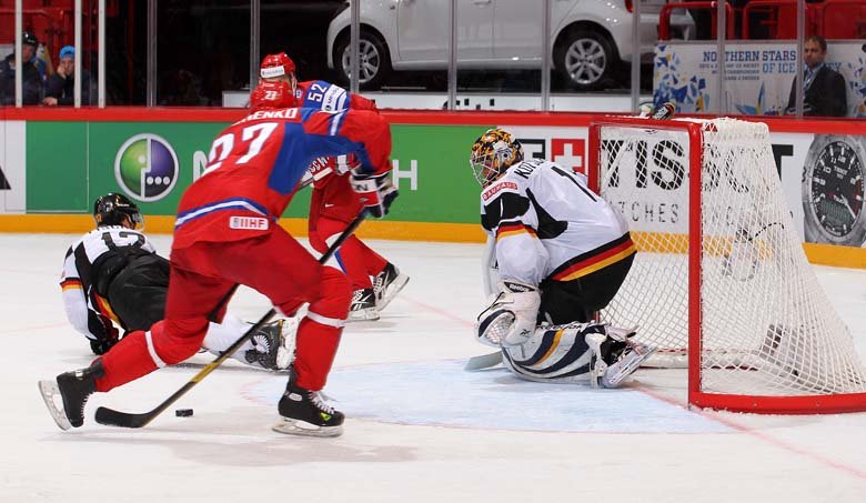 Сборная России, как ни странно, выглядела не намного лучше своего менее именитого соперника. Это была 100-я встреча команд на чемпионатах мира (включая времена сборной СССР). В 88 матчах победителем были российские или советские хоккеитсы, семь раз выигрывали немцы, а еще четыре матча закончились вничью. И всё-таки успех в этот вечер был на стороне россиян. В конце первого периода отличился Николай Жердев, а в заключительной трети матча большинство реализовал Алексей Терещенко. Вратарь же сборной России Семён Варламов отразил все 30 бросков немецких хоккеистов и сохранил свои ворота в неприкосновенности.