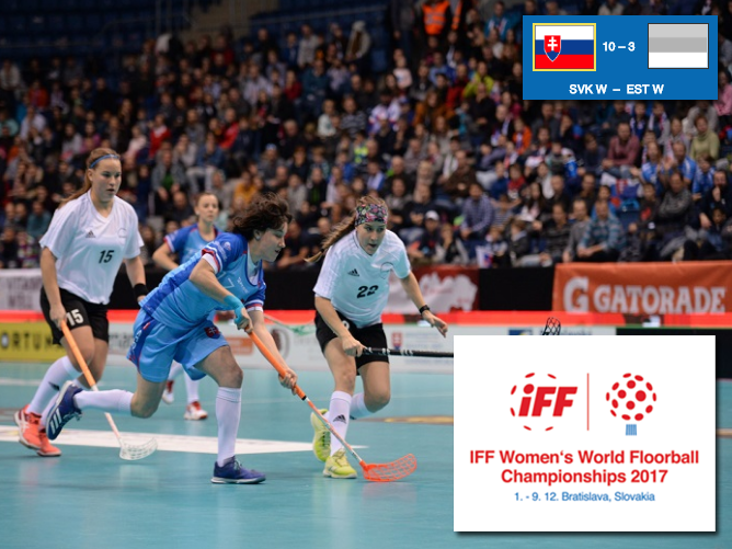 Счёт в матче на 7-й минуте открыла лучший бомбардир сборной Эстонии Эдит Парник, но затем словачки забили четыре гола подряд. Единственое, чем смогли ответить эстонские хоккеистки - два гола подряд, которые в середине матча забили Рети Ваарт и Диана Клаван, сократив отставание в счёте до минимума (3:4), но затем сборная Словакии окончательно захватила игромую инициативу, доведя дело до разгрома - 3:10 (1:2, 2:5, 0:3).