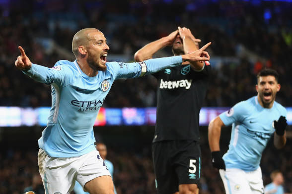 «Горожане Манчестера» то ли устали побеждать крупно и без интриги, то ли просто устали. Уже третий матч кряду «горожане» выигрывают со скрипом, каждый раз фиксируя на табло один и тот же счёт - 2:1. Причём решающий гол неизменно забивается на финише встречи. Разница лишь в том, что в поединках против «Хаддерсфилда» и «Саутгемптона» это делал Стерлинг, а в схватке против «Вест Хэма» роль спасителя исполнил испанец Давид Сильва (на фото слева).