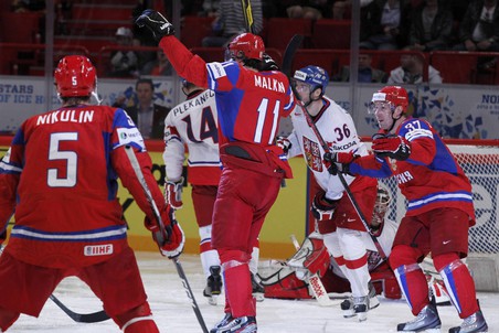 С финальной сиреной на второй перерыв россияне получили численное преимущество в два игрока и уже на 44-й секунде третьей двадцатиминутки Евгений Малкин завершил точным броском комбинацию с участием Александра Попова. Как оказалось впоследствии, этот гол стал последним в матче. Сборная России в третьем периоде была активнее чем в двух первых, но счёт увеличить не смогла. Чехи же выглядели растерянными, а их атаки, даже несмотря на два численных преимущества после удалений Малкина и Дацюка, не выглядели опасными. Из-за умелой игры россиян в обороне чешской команде даже не удалось провести финального штурма. Сменить вратаря на шестого полевого игрока они смогли лишь за 10 секунд до финальной сирены.