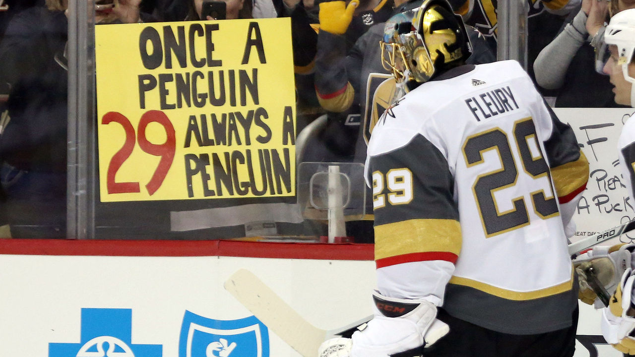 В регулярном чемпионате НХЛ прошли очередные одиннадцать матчей, самым ожидаемым из которых был поединок в Питтсбурге между "Пингвинз" и лидером Западной конференции - "Вегас Голден Найтс". Впервые в истории в бывшую промышленную столицу США прибыл экс-голкипер "Пингвинов" Марк-Андре Флери (на фото), который провел в Питтсбурге 13 сезонов, выиграв три Кубка Стэнли. Перед стартовым свистком зрители, многие из которых пришли с плакатами, устроили Марку-Андре длительную овацию, а на видеокубе было показано посвящение своему бывшему вратарю, которого "Пингвинз" не сумели защитить на прошлогоднем драфте расширения.