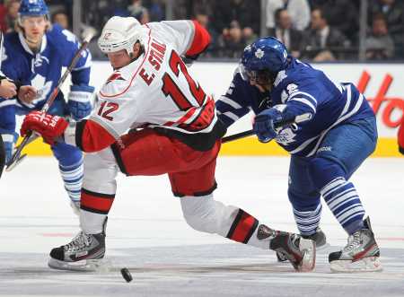 Финальная сирена зафиксировала разгром "Сент-Луиса" со счетом 8:3 (голы: Джейсон Цуккер, Микаэль Гранлунд (дважды), Эрик Стаал (трижды), Микко Койву, Джаред Спарджон (все - "Уайлд"), Владимир Тарасенко (дважды), Алекс Пьетранджело (оба - "Блюз"), а 33-летний нападающий "Миннесоты", член тройного золотого клуба Эрик Стаал (на фото в центре) не только оформил хет-трик, но сделал две голевые передачи. Джейсон Цуккер также набрал 5 (1+4) баллов, а Микаэль Гранлунд - 4 (2+2) очка. "Блюзмены Сент-Луиса", которые в начале сезона рассматривались как один из главных претендентов на Кубок Стэнли, потерпели уже седьмое поражение подряд и по каким-то непонятным внутренним проблемам, видимо, не хотят биться за место в плей-офф, от которого их отделяют сейчас всего 2 очка.