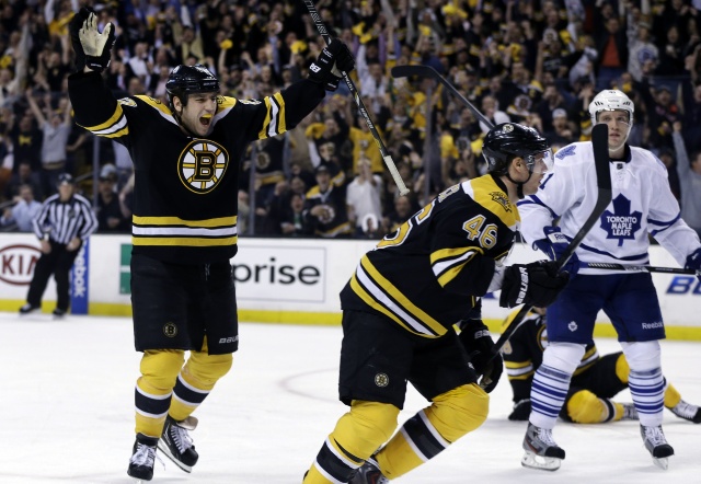 Третий период прошел под тотальную диктовку "Медведей", которые отправили в ворота "Кленовых листьев" четыре безответные шайбы. На 42-й минуте достиг цели мощный бросок от синей линии Тори Круга, который попал в нижний угол ворот Фредерика Андерсена - 4:4. На 46-й минуте победную шайбу в серии провел 21-летний Джейк ДеБруск, который забросил пятую шайбу в своем дебютном Кубке Стэнли - 5:4. А затем гол-красавец сооорудило первое звено "Бостона": Маршан с Бержероном посражались за воротами за шайбу, а Пастрняк, получив пас от Патриса, не оставил шансов Андерсену - 6:4. Окончательный счет на последней минуте установил Маршан, который из средней зоны не промахнулся по пустым воротам "Мейпл Лифз" - 7:4.