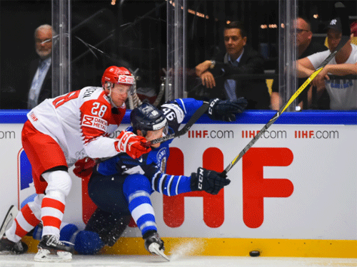Третья двадцатиминутка прошла под знаком игрового превосходства сборной Финляндии, но долгое время хозяева первенства сохраняли победный счёт. И всё-таки за четыре с небольшим минуты до конца основного времени Микаэль Гранлунд второй раз установил на табло ничейный счёт - 2:2. Казалось, что сборная Дании попытается перевести игру в овертайм, набрав в поединке с грозным соперником хотя бы очко, но неудачный выброс шайбы из своей зоны стал для финнов роковым. Численное преимущество, полученное за это нарушение, на первой секунде предпоследней минуты встречи реализовал Никлас Хардт. Сборная Финляндии, сняв вратаря, даже в меньшинстве,случившемся из-за фола в атаке, прижала датчан к воротам, но голкипер хозяев Фредерик Андерсон на последних секундах несколько раз спас свои ворота. И вот она - первая сенсация нынешнего чемпионата - Дания обыграла Финляндию.
