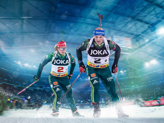 Гонка с участием звёзд мирового биатлона состояла из двух этапов - масс-старта и гонки преследования.по его итогам. Лучше всех на трассе, проложенной по территории футбольного стадиона немецкого клуба "Шальке", проявил себя итальянский дуэт Доротеи Вирер и Лукаса Хоффера (на фото), который выиграл оба этапа и впервые в истории своей страны поднялся на первую ступень пьедестала почёта "Рождественской гонки".