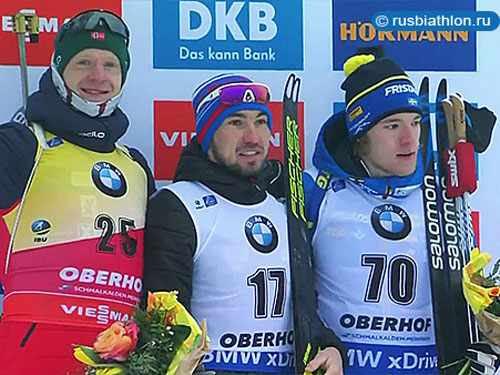 Российский биатлонист преодолел 10-километровую дистанцию за 25 минут 50,9 секунд, закрыв все десять мишеней на двух огневых рубежах. На 25,2 секунды от него отстал пробежавший один штрафной круг норвежец Йоханнес Бё, который на первых трёх этапах нынешнего сезона выиграл все спринтерские гонки. На третьем место с чистой стрельбой вскарабкался швед Себастьян Самуэльсон, уступивший победителю 38,8 секунды.