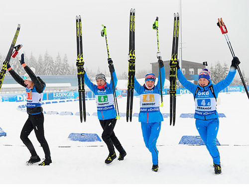 Преодолев четыре этапа по 6 километров за 1 час 18 минут 46 секунд, россиянки стали лучшими в эстафетной гонке на этапе Кубка мира после семилетнего перерыва. Предыдущее "золото" в этой дисциплине было завоёвано здесь же в Оберхоффе в 2012 году, когда сборную России представляли Анна Богалий-Титовец, Светлана Слепцова, Ольга Зайцева и Ольга Вилухина. С тех пор а активе россиянок было только шесть призовых мест.