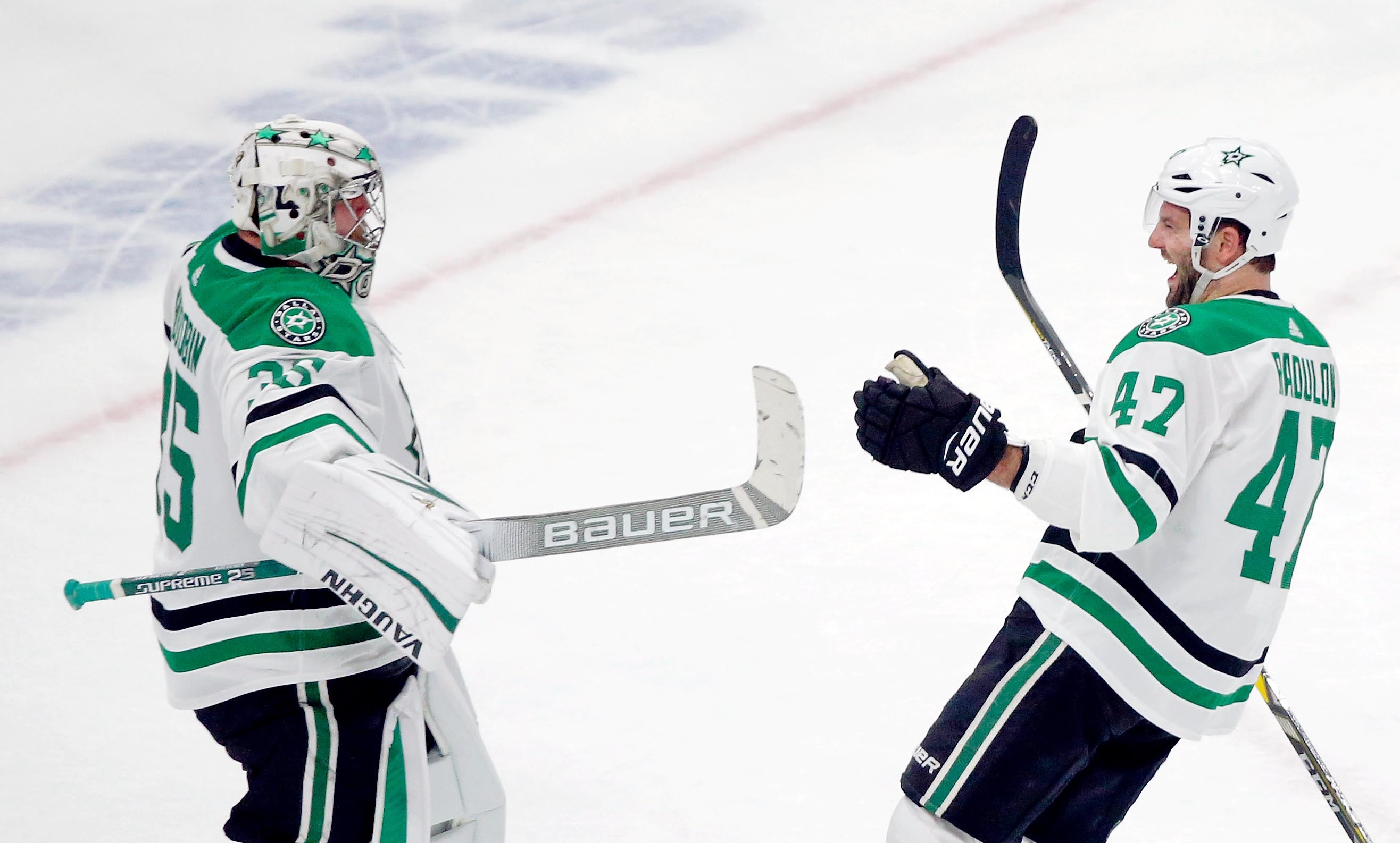 2-го апреля в регулярном чемпионате прошло десять игр, после которых интрига в Западной конференции сошла на нет. Хоккеисты "Даллас Старз" дома нанесли поражение "Летчикам Филадельфии" - 6:2 (голы: Джейсон Диккинсон, Эса Линделл, Александр Радулов (дважды), Тайлер Питлик, Блэйк Комо (все - "Старз"), Оскар Линдблом, Шэйн Гостисбере (оба - "Флайерс") и гарантировали место в плей-офф Кубка Стэнли. Отличный матч провели россияне Александр Радулов (на фото справа) и Антон Худобин (на фото слева). Радулов впервые в сезоне набрал 4 (2+2) балла в одной встрече, став первой звездой, а Худобин отразил 32 броска из 34-х и был признан третьей звездой матча. "Даллас" набрал 91 очко после 80 игр, занимая седьмое место на Западе.