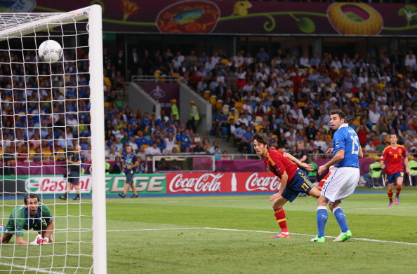 Во многом исходит главного поединка турнира решил быстрый гол, который забил на 14-й минуте Давид Сильва (на фото). Он великолепным ударом головой завершил быструю комбинацию с участием Иньесты, сделавшего великолепную передачу на правый угол штрафной площади и Фабрегаса, выведшего Сильву на удар пасом назад. Атакующему полузащитнику "Манчестер Сити" оставалось только не промахнуться в дальний угол ворот Джанлуиджи Буффона - 1:0.