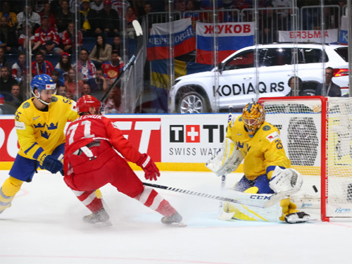 Первый период матча остался за сборной Швеции, которая на восьмой минуте встрыла открыла счёт, воплотив удаление Сергея Андронова в гол Габриэля Ландескуга. Однако судьба матча решилась во второй двадцатиминутке, когда сборная России забросила шесть безответных голов на любой вкус.