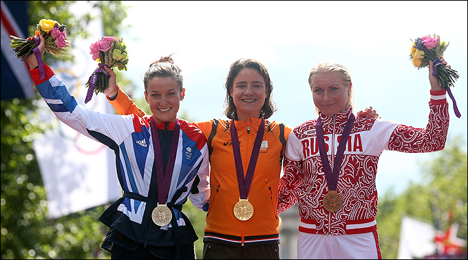 Ещё две "бронзовых" медали в копилку сборной России принесли велогонщица Ольга Забелинская (на фото - справа) и саблист Николай Ковалёв. Однако даже три третьих места не сберегли в этот день россиянам место в первой десятке общекомандного медального зачёта (ОМЗ) - по состоянию на конец дня они занимают лишь 12-е место.