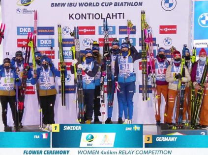 В субботу, 5 декабря, в финском Контиолахти, где проходит второй этап Кубка мира по биатлону, прошла первая женская эстафета сезона 2020/21 годов. Победу в ней одержала шведская четвёрка девушек. Вместе с ними на пьедестал взошли француженки и немки. Сборная России финишировала на четвёртом месте, а команда Эстонии, отстав более, чем на круг, заняла в итоговом протоколе 17-е место.