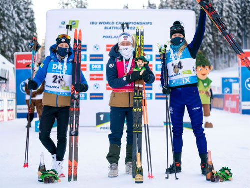 В словенской Поклюке, где продолжается Чемпионат мира по биатлону 2021 года, 13 февраля разыгран комплект наград в женской спринтерской гонке. Лучшее время в ней показала норвежская биатлонистка Тириль Экхофф, второе место завоевала француженка Анаис Шевалье, а "бронзу" увезла в Беларусь Анна Сола.
