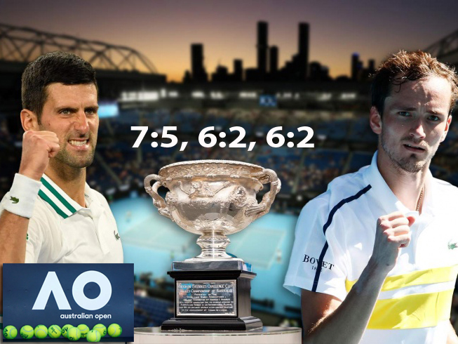 В австралийском Мельбурне 21 февраля был сыгран финальный матчи мужского одиночного разряда Открытого чемпионата Австралии 2021 года.В нём сербский теннисист Новак Джокович в трёх партиях выиграл у россиянина Даниила Медведева (7:5, 6:2, 6:2).