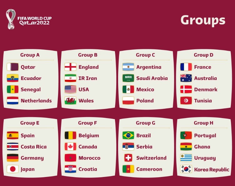 Финальный турнир XXII чемпионата мира по футболу пройдёт с 20 ноября по 18 декабря 2022 года в Катаре. Сначала пройдут групповые турниры в восьми квартетах, а затем по две лучшие сборные из кажого сыграют матчи на выбвание по системе плей-офф.