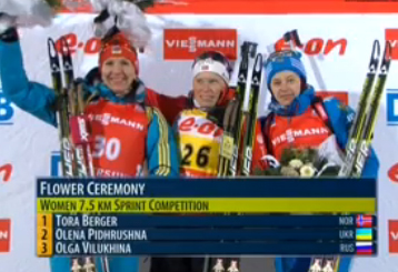 В первый день декабря второй гонкой на первом этапе Кубка мира по биатлону, который проходит в шведском Эстерсунде, был женский спринт, ставший триумфальным для норвежки Торы Бергер. Второе место досталось украинской биатлонистке Елене Пидгрушной, а "бронзу" России принесла Ольга Вилухина, опередившая свою соотечественницу Ольгу Зайцеву, занявшую в итоге четвёртое место.