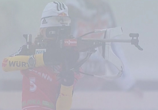 Продолжает показывать свою отличную форму немка Мириям Гёсснер (на фото), которая с четырьмя промахами сумела занять второе место, отстав от победительницы на 35,5 секунды. Это уже третий подряд подиум многообещающей немецкой спортсменки, которая ранее в Поклюке финишировала второй в спринте и выиграла гонку преследования.