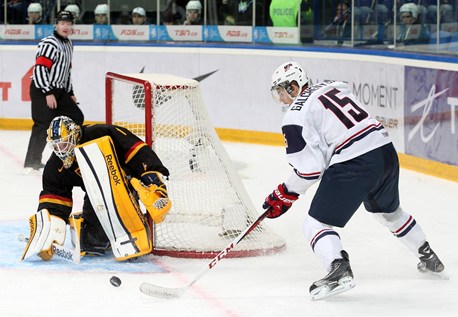 Во втором матче дня сборная США не оставила и тени надежды сверстникам из Германии, выиграв со счетом 8:0 (3:0, 3:0, 2:0) и став лидером группы "В". Подопечные 48-летнего легендарного защитника Фила Хаусли, который 21 сезон отыграл в НХЛ, а восемь лет назад был включен в Зал хоккейной славы США, могли забить и больше, но в третьем периоде несколько "сбавили обороты". Шайбы забросили Шон Курали, Джейкоб Троуба, Алекс Галченюк (на фото), Райли Барбер, Шейн Гостисбехер, Райан Хартман, Джей-Ти Миллер и Сет Джонс.