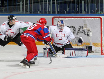 Первое же удаление в матче оказалось результативным - Александр Хохлачёв с передачи Наиля Якупова и Никиты Нестерова открыл счёт в самом начале седьмой минуты матча. Прошло четыре минуты и случился конфуз. Второе нарушение правил швейцарцами оказалось результативным уже для них - Кристоф Бертши перехватил шайбу и в меньшинстве зажёг красный свет за спиной у голкипера сборной России Андрея Василевского - 1:1.