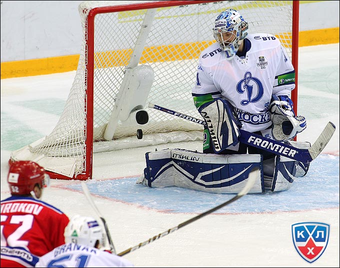 Второй поединок "московского дерби" ЦСКА начал с оглядкой на собственные ворота, памятуя о разящих контратаках динамовцев днём ранее, но на это раз фортуна была на стороне армейцев. Первый гол они забили на на 15-й минуте матча, когда Олег Кваша отдал пас на пятачок и Игорь Григоренко пробил Александра Ерёменко, бросив из-под защитника. Отыгралось "Динамо" за минуту до первого перерыва благодаря мощнейшему броску от синей линии Андрея Миронова (шайбу едва было видно даже на видеповторе). Во втором периоде соперники действовали еще более осторожно. Позиционные атаки заканчивались розыгрышами шайбы «до верного» и нечасто приводили к голевым ситуациям. Второй и, как оказалось, победный гол армейцев Дмитрий Кугрышев, несмотря на двух ассистентов в протоколе, сотворил самостоятельно. Ловко уйдя от силового приема за воротами, он выкатился из-за них и послал шайбу под перекладину. В третьем периоде динамовцы взвинтили скорости, отчаянно прессинговали в чужой зоне, но опасных моментов практически не создали. За минуту и 14 секунд до сирены бело-голубые заменили голкипера на шестого полевого игрока, устроили отчаянный штурм и имели три супер-шанса на продолжение борьбы, но безупречно в эти секунды действовал голкипер ЦСКА Станя.