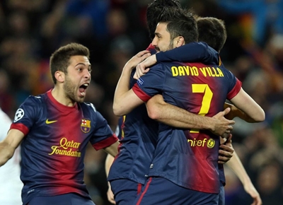 "Барселона" отлично выучила прошлогодний урок, который на "Камп Ноу" им преподнес "Челси", возглавляемым итальянским наставником. И "Милан" ждал, что каталонцы вновь будут проникать в штрафную, откуда наносить удары по воротам Кристиана Аббьяти. Уже на 5-й минуте план "Барсы" стал давать плоды - Лео Месси перед линией штрафной принял мяч и первым движением подыграл себе, а вторым движением послал мяч в правую "девятку" - 1:0. Чуть позже последовал удар Иньесты - Аббьяти с трудом справился, но мяч отразившись от перекладины вылетел в поле. Затем бил Хави, но Аббьяти достал мяч и перевел его на угловой. Пожалуй, важнейшим для определения победителя стал промежуток с 38-й по 40-ю минуты. Форвард "Милана" Ньянг убежал с середины поля на рандеву с Виктором Вальдесом, но его удар пришелся в штангу. Год назад в подобной ситуации полузащитник "Челси" Рамирес Вальдеса не пощадил, что и привело к вылету "Барсы". Освежив память, каталонцы вновь вернулись к реализации плана на игру. Хави перехватил мяч, отпасовал к линии штрафной Месси, который вновь первым движением подработал мяч под свою любимую левую и пробил из под ноги Мексеса - 2:0. Только после перерыва миланцы перестали исскуственно затягивать ввод мяча в игру. Теперь команды оказались в равных условиях. Впрочем этот статус-кво продержался недолго - на 55-й минуте Хави нашел передачей Давида Вилью (на фото справа), который справа ворвался в штрафную и обводящим ударом послал мяч в дальний угол - 3:0. Теперь уже миланцам надо было забивать и они пошли на штурм ворот "Барселоны". Несколько раз в штрафной Вальдеса было горячо, особенно после прострела бывшего игрока "Барсы" Бояна Кркича, но каталонцы выстояли, ликвидировав все угрозы.А затем "Барса" поймала гостей на контратаке, которую завершил защитник Хорди Альба (на фото слева) - 4:0. Поклонники каталонцев увидели "план Б", который привел к успеху и выходу "Барселоны" в 1/4 финала!