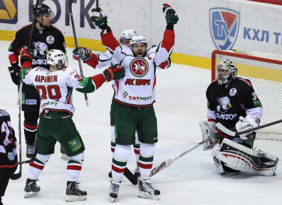 На 50-й минуте матча Петри Куонтила ещё раз наказал казанцев за удаление, доведя преимущество "Трактора" до двух шайб, но "Ак Барс" не сдавался. Сначала за пять минут до конца основного времени их капитан Алексей Морозов оформил дубль отличным броском со средней дистанции, а ещё через полминуты Лаурис Дарзиньш, получив перед воротами великолепный пас от Терещенко, перевёл игру в овертайм - 5:5.