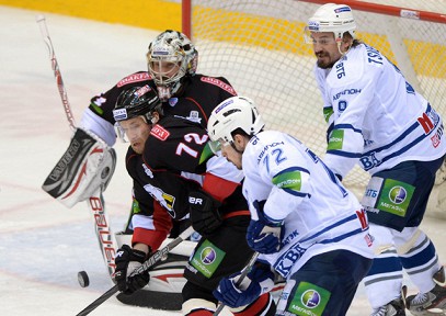 Уже в первом периоде, оставшемся безголевым, хозяева перебросали соперника (8 бросков в створ ворот Александра Ерёменко против 6 в ворота, защищаемые Майклом Гарнеттом), но уже на четвёртой минуте второй двадцатиминутки счёт был открыт. После броска Антона Глинкина первым на добивании оказался Максим Карпов, который и зажёг красный свет за воротами москвичей. Удвоил преимущество челябинцев на 35-й минуте Дерон Куинт - он настолько внезапно и точно бросил из круга вбрасывания в верхний угол ворот "Динамо", что Ерёменко не смог помочь своей команде.