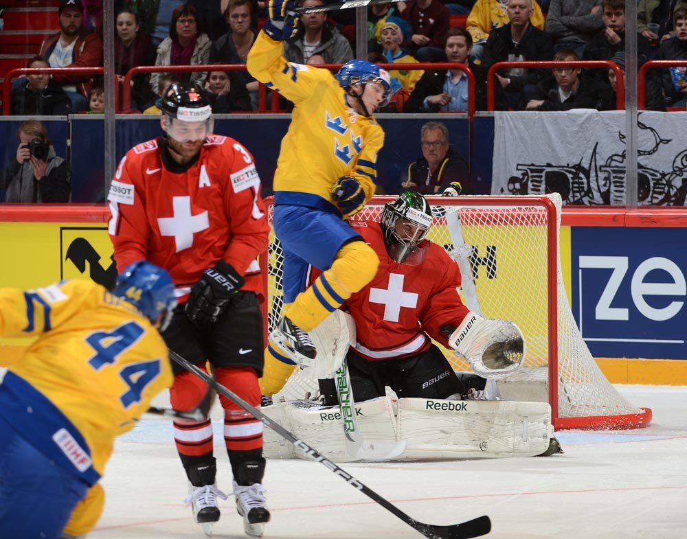 Сборная же Швеции так и не смогла одолеть швейцарскую команду. После первого периода, прошедшего с небольшим преимуществом хозяев, в котором шайба один раз попала в стойку шведских ворот вторая двадцатиминутка стала для них настоящим шоком. На третьей его минуте Биебер выел швейцарцев вперёд, а на исходе девятой Ниедерриетер удвоил преимущество представителей страны часов и сыра.
