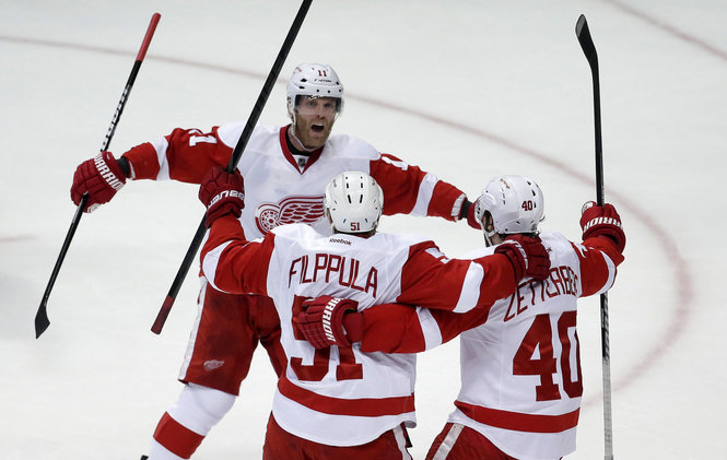 "Детройт Ред Уингз", уступая в серии "Анахайм Дакс" - 2:3, выиграл шестой (4:3) и седьмой (3:2) матчи и вышел в 1/4 финала плей-офф. Решающий поединок состоялся на площадке "уток", но прошел под диктовку "красных крыльев". Счет во встрече открыл шведский капитан "Детройта" Хенрик Зеттерберг уже на 109-й секунде. На 14-й минуте Эмерсон Итем восстановил равновесие, но спустя три минуты Джастин Абделькадер вновь вывел "Детройт" вперед - 2:1. Победной в матче и серии стала шайба финна Валттери Филппулы, заброшенная на 34-й минуте. "Утки" пытались спастись, но смогли лишь сократить разницу в счете, реализовав численное большинство на 57-й минуте. Автором последней шайбы в серии стал Франсуа Бьюшемин. Таким образом, вице-капитан "Детройта" Павел Дацюк не сможет помочь сборной России на чемпионате мира, а продолжит борьбу за Кубок Стэнли.