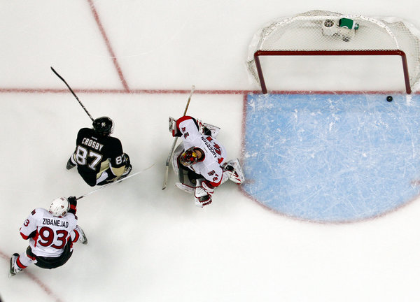 На фото: Сидни Кросби поражает ворота "Оттавы"