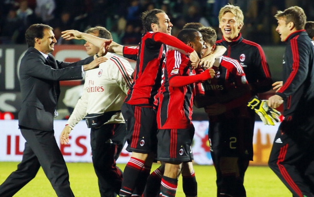 На фото: "Милан" празднует выход в Лигу Чемпионов.