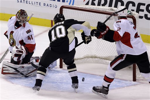 Счет в матче на 7-й минуте открыл Бренден Морроу (на фото). На 28-й минуте Джеймс Нил реализовал численное большинство, а на 33-й минуте после броска Криса Летанга счет стал уже 3:0 в пользу хозяев. До конца второго периода Милан Михалек сквитал одну шайбу, но Евгений Малкин восстановил статус-кво - 4:1. В заключительном периоде еще дважды отличился 25-летний канадец Джеймс Нил, у "сенаторов" одну шайбу провел Кайл Туррис.