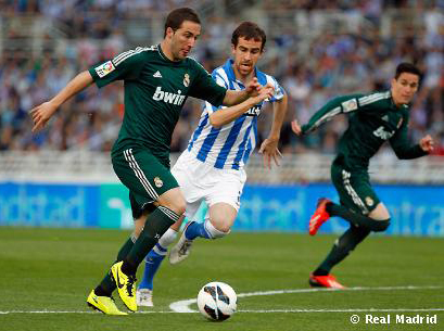 Самый яркий матч дня состоялся в Сан Себастьяне, где местный "Реал Сосьедад", ведущий борьбу за четвёртое место и путёвку в Лигу чемпионов следующего сезона, принимал самый известный "Реал" в мире - мадридский. "Королевский клуб", игравший далеко не первым составом, повёл в счёте уже на шестой минуте после того как выход один на один с вратарём хозяев реализовал Игуаин. После того, как на 57-й минуте Кальехон с передачи Кака удвоил преимущество мадридцев, показалось, что игра сделана. Однако, проводящий один из лучших сезонов в своей истории басконский клуб с этим не согласился.